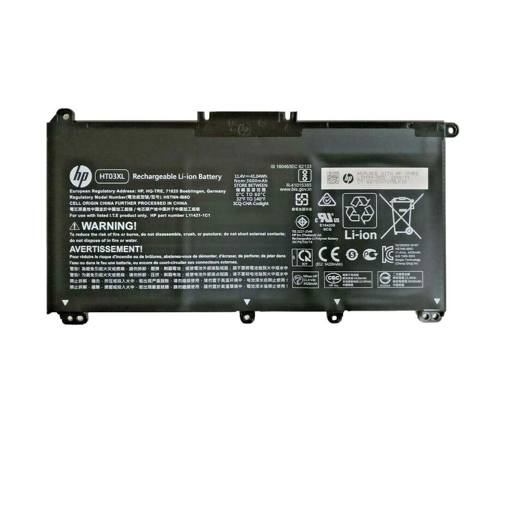 11,4V 3600mAh HP 15-da 17-ca 15-cs 17-by 15-db 14-se 14-cm 14-ck 15-cw 14-cf 14-dk 15-dw 14s-dg 15s-fq 17-BY0003NA HT03XL, HSTNN-DB8R, HSTNN-IB8O, HSTNN-LB8M, HSTNN-UB7J, L11421-1C1, L11421-1C2, L11421-2C1, L11421-2C2, L11421-2C3, L11421-2D2, L11421-421, L11421-422, L11421-423, L11421-542, L11421-544, L11421-545, L11119-855